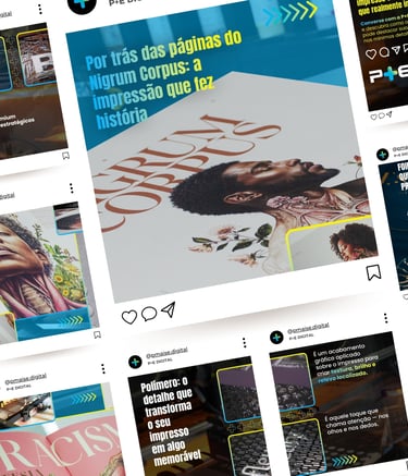 Foi desenvolvido carroseis criativos para as redes sociais da gráfica P+E que produz materiais gráficos para empresas grandes, sempre focando na identidade visual da marca e o objetivo de valorizar os produtos que a mesma produz, também desenvolvi assets para compor as artes, sempre para comunicar de forma objetiva e acertiva a qualidade de seus serviços.